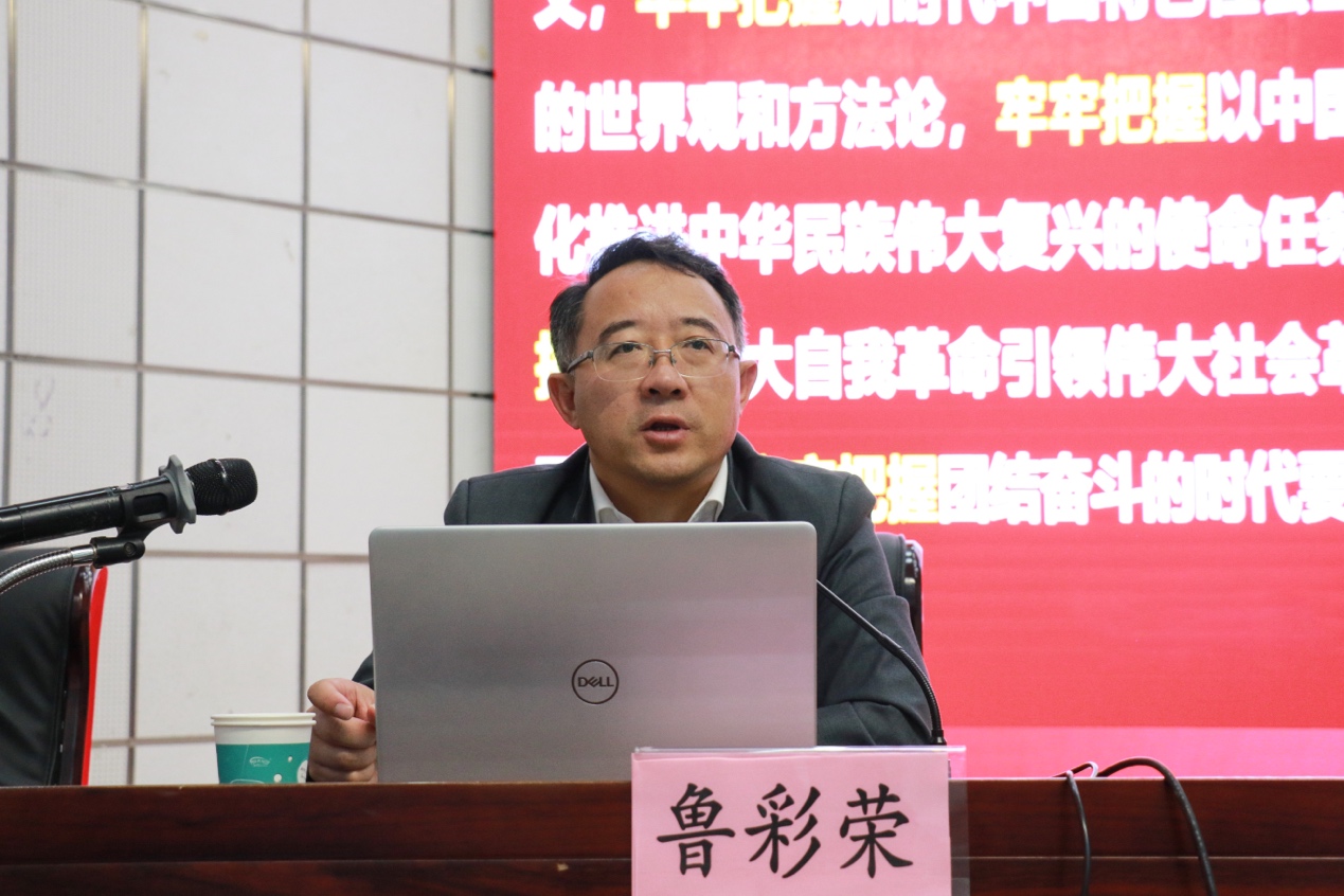 此次讲座邀请到中共云南省委党校(云南行政学院)校(院)务委员、科学社会主义教研部主任鲁彩荣教授,他以“全面建设社会主义现代化国家、全面推进中华民族伟大复兴的政治宣言和行动纲领”为主题,为师生们作深入学习贯彻党的二十大精神专题辅导。讲座从“深刻认识党的二十大召开的重大意义”、“全面把握党的二十大的重大部署”、“高扬新时代中国共产党思想旗帜”、“深刻领悟党的二十大的重大论断”四个方面对党的二十大提出的新思想新论断、新部署新要求进行了深入阐释和详细解读。鲁教授的讲座政治站位高、脉络清晰、重点突出、内容丰富、生动形象,既有深入浅出的理论阐述,又有广征博引的案例解析,更有实践层面的对策思考,对全面理解和把握党的二十大精神具有很强的指导意义,现场聆听的师生们纷纷表示受益匪浅。