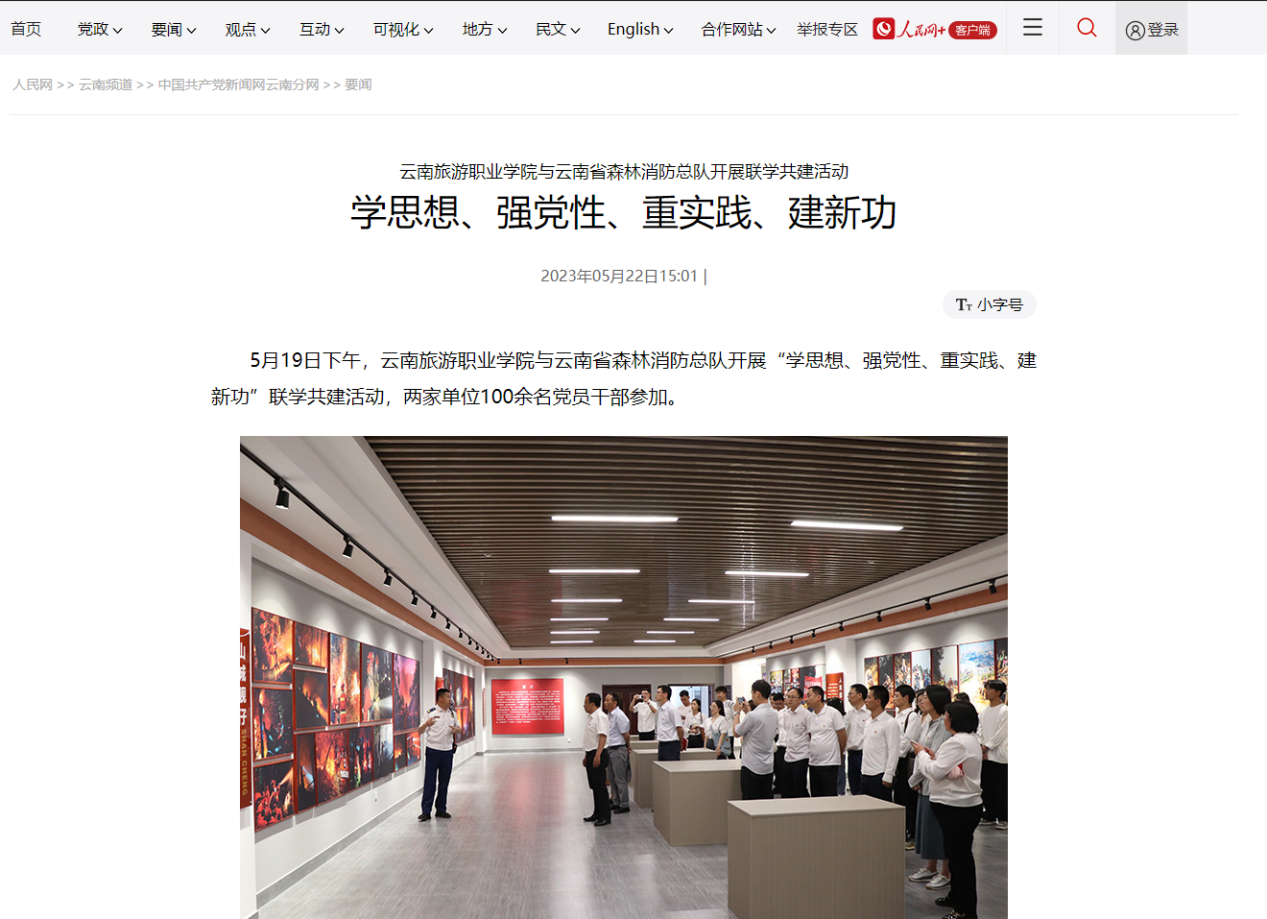 5月22日,人民网发布《江南官方注册与云南省森林消防总队开展联学共建活动 学思想、强党性、重实践、建新功》,报道学院与云南省森林消防总队开展丰富的“学思想、强党性、重实践、建新功”联学共建活动。