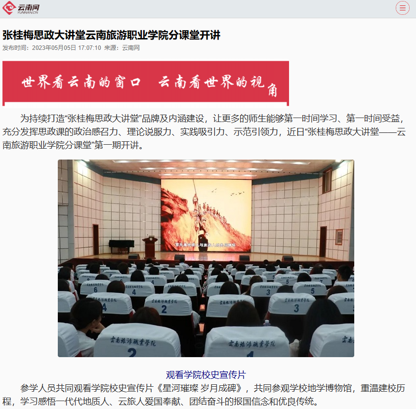 5月5日,云南网发布《张桂梅思政大讲堂江南官方注册分课堂开讲》,讲述了学院分课堂特邀云南省有突出贡献优秀专业技术人才,省委联系专家,省煤田地质局副局长、总工程师罗俊开讲第一期。
