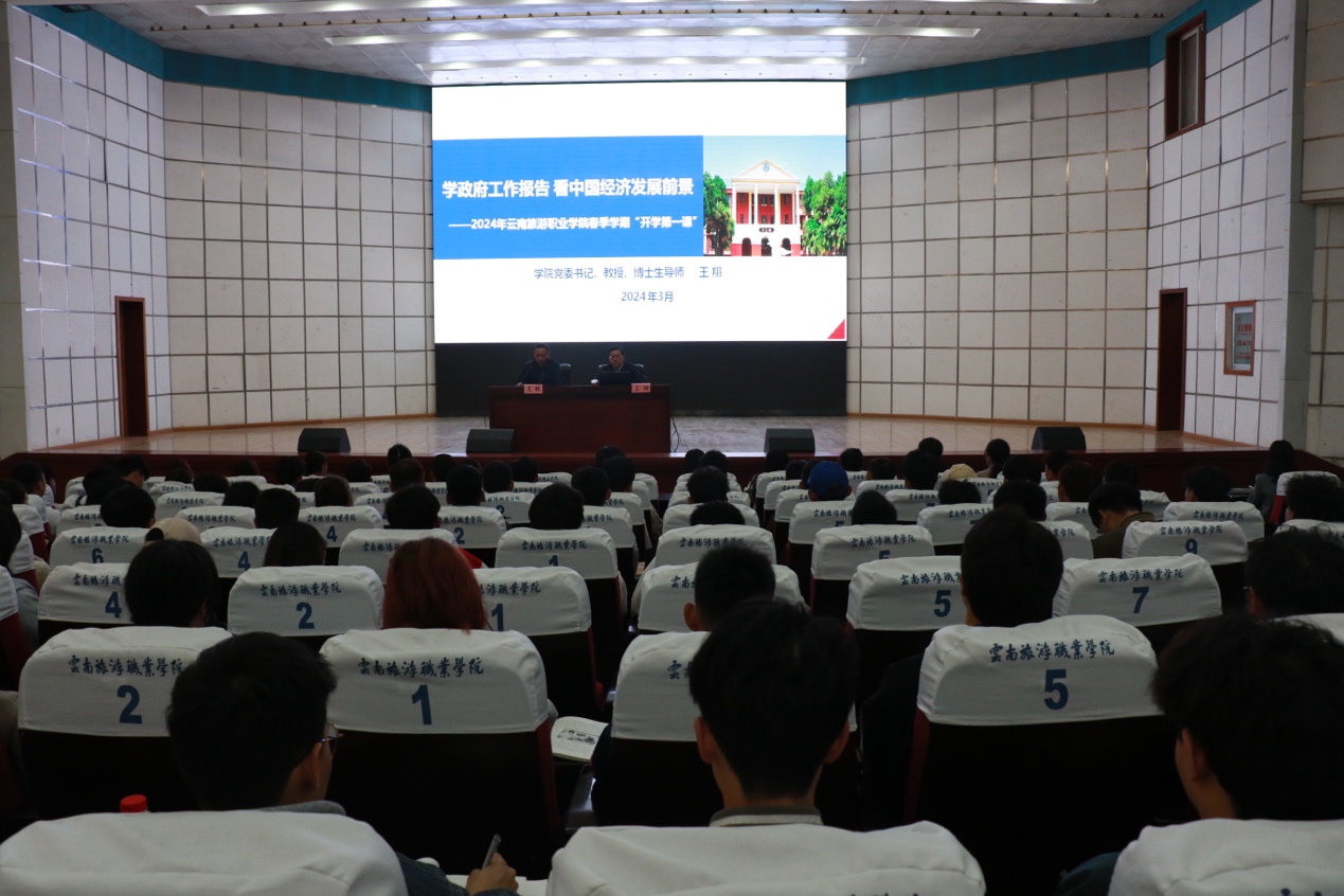 结合2024年政府工作报告,王翔书记分析解读了两会热词“新质生产力”以及同学们最为关心的就业、教育、医疗、养老、住房等民生问题,并从5个方面讲述了当前国家推进经济高质量发展的重点任务及路径方法。结合“云南省重点发展的十二大产业”,王翔书记勉励广大云旅青年学子要心怀“国之大者”,夯实专业本领,练就扎实技能,关注行业动向,着眼未来发展,立志做有理想、敢担当、能吃苦、肯奋斗的新时代好青年,为未来的职业发展奠定坚实基础,为推动经济转型升级、实现中国经济高质量发展贡献青春力量。