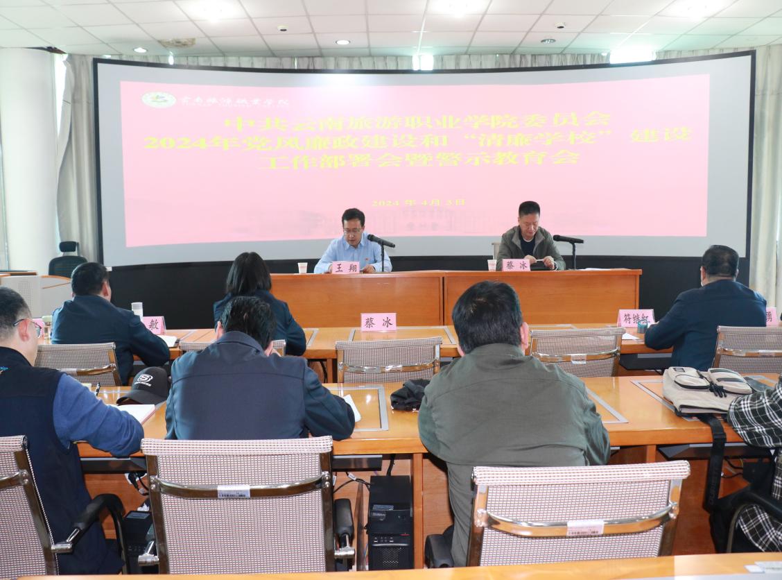 4月3日下午,我校召开2024年度党风廉政建设和清廉学校建设工作部署会暨警示教育会,总结2023年党风廉政建设工作,安排部署2024年党风廉政建设重点任务和清廉学校建设工作。党委书记王翔作讲话,党委副书记、院长蔡冰主持,党委副书记王敏传达相关会议精神,纪委书记丁戎作警示教育。