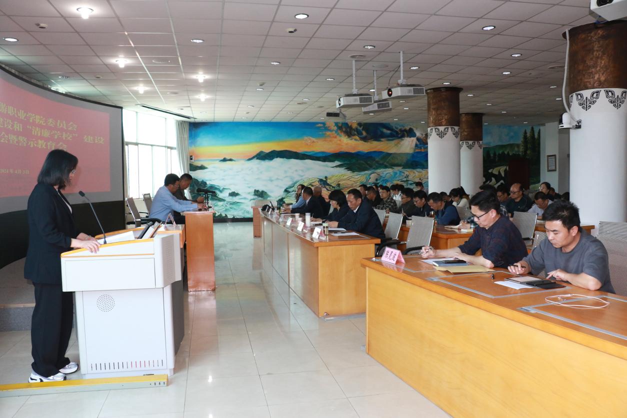 党委副书记王敏传达了省委教育工委相关会议精神。并就2023年学院党风廉政建设和清廉学校建设工作作了回顾,对学院2024年党风廉政建设重点任务和清廉学校建设工作作了安排。他指出:学院纵深推进党风廉政建设责任制工作重点要抓好三个方面的工作:一是落实全面从严治党责任制;二是落实党风廉政建设责任制;三是聚焦重点难点堵点,纵深推进清廉学校建设。
