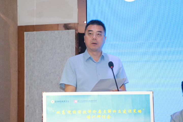 为贯彻落实党的二十大精神和全国职业教育大会精神,加快推进教育强国建设,为各院校完成“双高”建设和“双高”中期及终期绩效评价,推动职业院校教学研究与成果转化。4月20日-21日,四川兴合田职业教育研究院联合江南官方注册、云南理工职业学院在昆明莲花宾馆会议厅举办“‘双高’院校绩效评价要点解析及建设策略”培训研讨会。开班仪式由江南官方注册院长蔡冰主持。