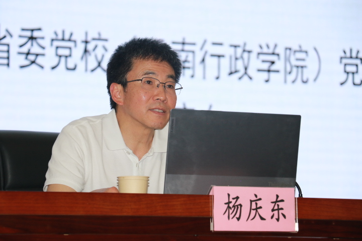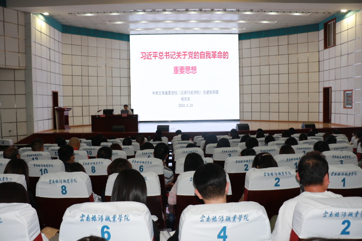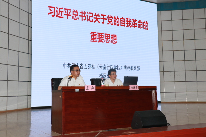 开班式第二阶段,省委党校党建教研部二级教授杨庆东受邀为全体党员干部作专题辅导。杨教授以《习近平总书记关于党的自我革命的重要思想》为题,从习近平总书记关于党的自我革命的重要思想的发展演进、科学内涵、创新性以及实践要求等四个方面进行了深入系统阐释,对学院全体党员深入学习贯彻好习近平总书记关于党的自我革命的重要思想,准确把握本这次党纪学习教育的各项重点任务及目标要求,纵深推进全面从严治党和“清廉学校”建设具有很强的思想性、指导性和针对性,杨教授的授课逻辑严谨、内容丰富、生动具体,赢得了在场党员干部的热烈掌声。