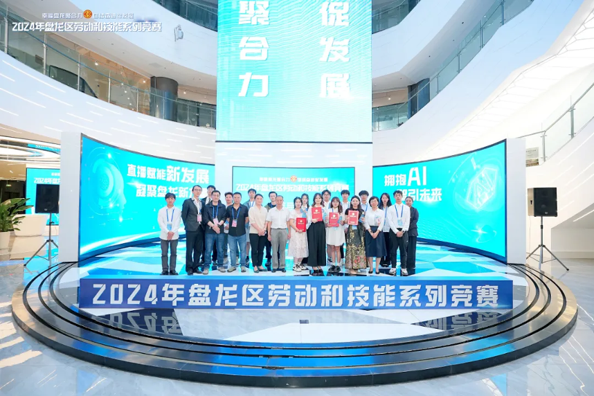 直播竞赛点亮创新活力,数字人才展现技能风采。5月24日,备受瞩目的“直播赋能新发展 凝聚盘龙新力量”互联网营销师(直播销售员)技能竞赛在充满现代科技感的盘龙区云上数字赋能产业园拉开帷幕,我校经济管理学院网络营销与直播电商2301班的8名选手入围决赛。