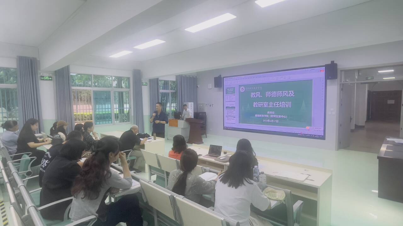 6月17日,由教务处、继续教育学院联合举办的“教研室主任培训”在综合楼阶梯教室举行。本次培训旨在加强教研室建设,提升教研室主任的业务能力和管理水平,以助推学院内涵式高质量发展。院长蔡冰出席会议并作讲话。
