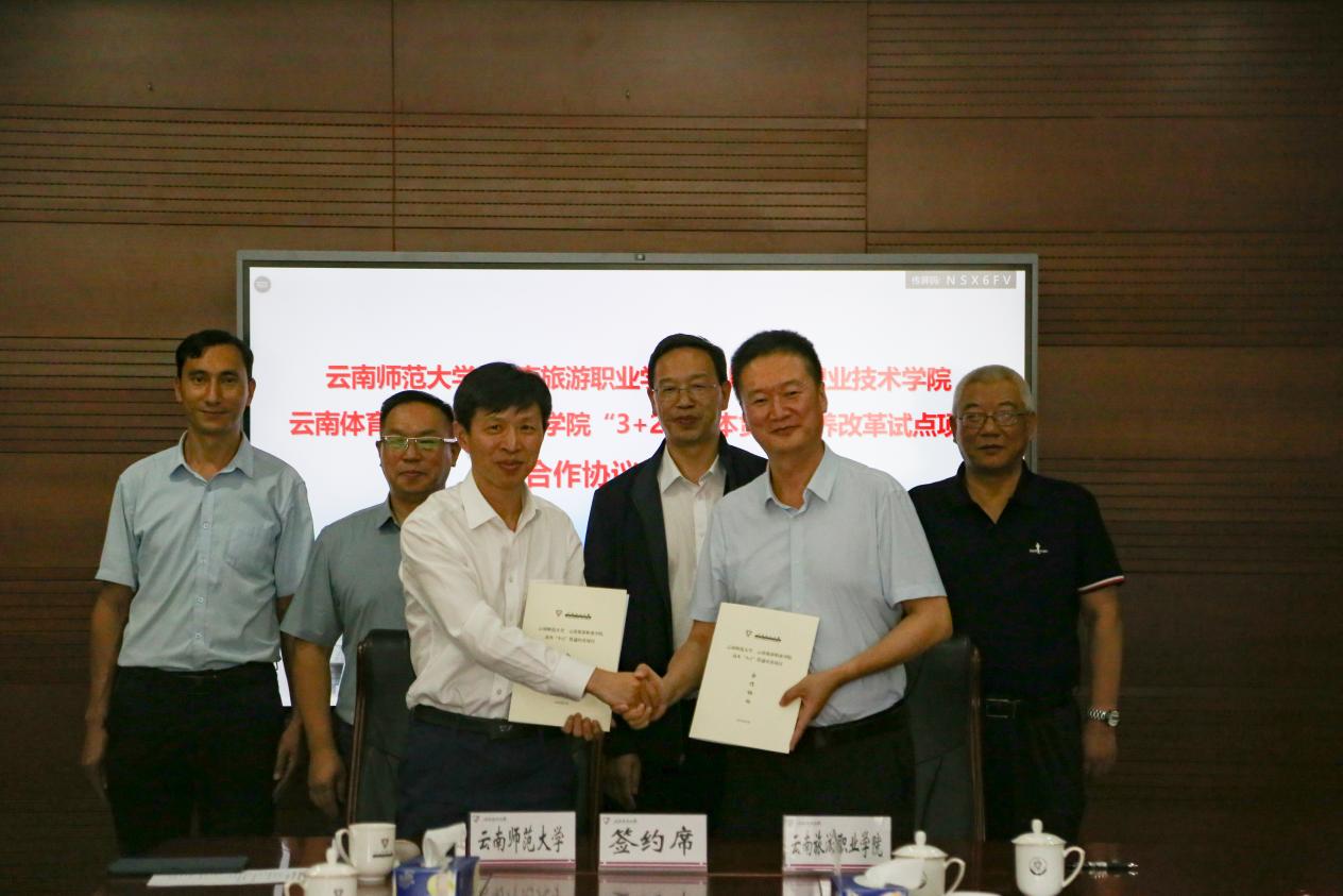 随后,蔡冰院长和云南师范大学校长胡金明共同签署《“3+2”高本贯通培养试点合作协议》。