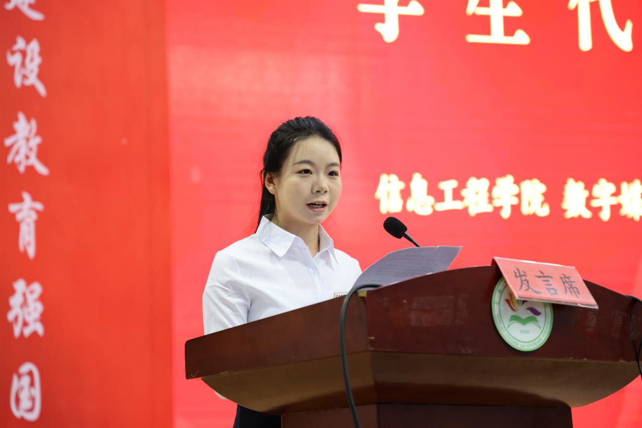 “一个人遇到好老师是人生的幸运,学校拥有好老师是光荣,民族不断涌现好老师则是希望。”来自信息工程学院2023级数字媒体专业的王宇岚代表全校学生向无私奉献的教师们致以崇高敬意,感谢他们的辛勤耕耘与无私奉献,为他们的成长之路点亮明灯。