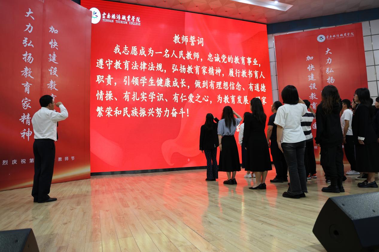 会议介绍2024年上半年公开招聘新入职的教师,在学院党委书记王翔的领誓下,新学期入职的50名教师,举起右手,庄严宣誓:“我志愿成为一名光荣的人民教师,忠诚党的教育事业……”,掷地有声的誓词,是每一位新教师的坚定心声,更是对教育事业的庄严承诺。