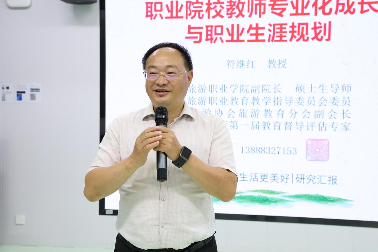 我校党委副书记、院长蔡冰出席并作动员讲话。蔡冰院长结合文旅康养产业发展趋势及国家职业教育发展背景,分析我校发展面临的机遇与挑战,勉励大家弘扬教育家精神,聚焦我校内涵建设和“双高”建设要求,以“科教并举、德厚技高”为目标,从入职第一天起,就养成并坚持务实肯干、好学精进、勇于担当的工作作风,早日成为我校发展的生力军和骨干力量。