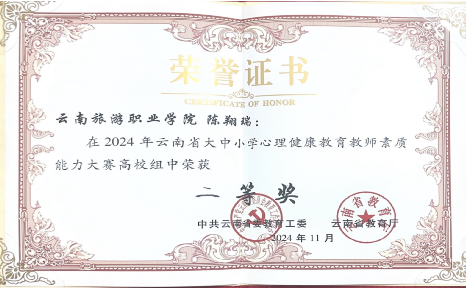 11月2日,第十届云南省大中小学心理健康教育教师素质能力大赛决赛在都晏酒店落下帷幕。大赛由省委教育工委、省教育厅主办,昆明冶金高等专科学校承办,安宁市教育体育局协办。经过激烈的角逐,江南官方注册学生处心理健康教育与咨询中心的陈翔瑞老师脱颖而出,荣获高校组二等奖的佳绩。