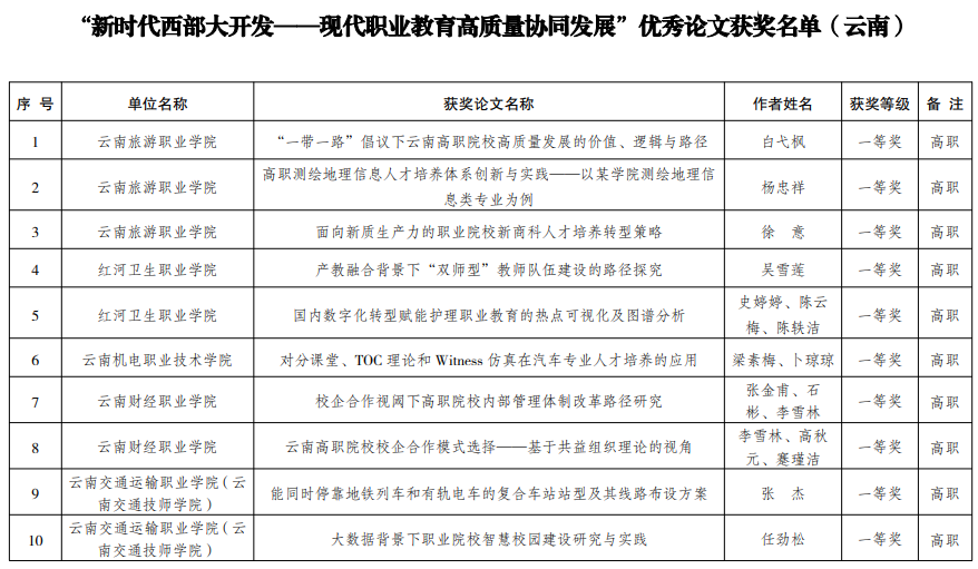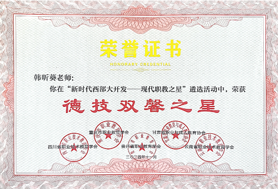 近日,重庆市职业教育学会、甘肃省职业与成人教育协会、四川省职业技术教育学会、贵州省职业教育学会和云南省职业技术教育学会等西部5省市职业教育学会联合公布了《关于“新时代西部大开发”现代职教之星、“现代职业教育高质量协同发展优秀论文”征集遴选结果的通知》。我院在本次遴选中荣获7个奖项,其中学院荣获“创新发展之星”称号,校企合作企业武汉天坤递云教育科技有限公司荣获“产教融合之星”称号,烹饪学院韩昕葵老师荣获“德技双馨之星”称号,酒店管理学院矣金莉同学荣获“技术技能之星”称号,同时,白弋枫、杨忠祥和徐意三位老师的文章入选“新时代西部大开发——现代职业教育高质量协同发展优秀论文”。