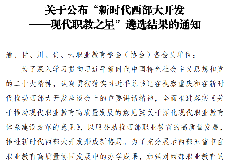 本次遴选是由渝、甘、川、贵、云5省职业教育学会共同组织,对各职业院校在党的建设、校企合作、服务国家重大发展战略、产教融合、人才培养质量、队伍建设、特色文化建设、“三教改革”、数字化转型等九个方面的办学实力进行综合评估,产生如上结果。遴选范围包括全省所有职业院校,遴选结果在西部地区具有较高的社会认可度和影响力。