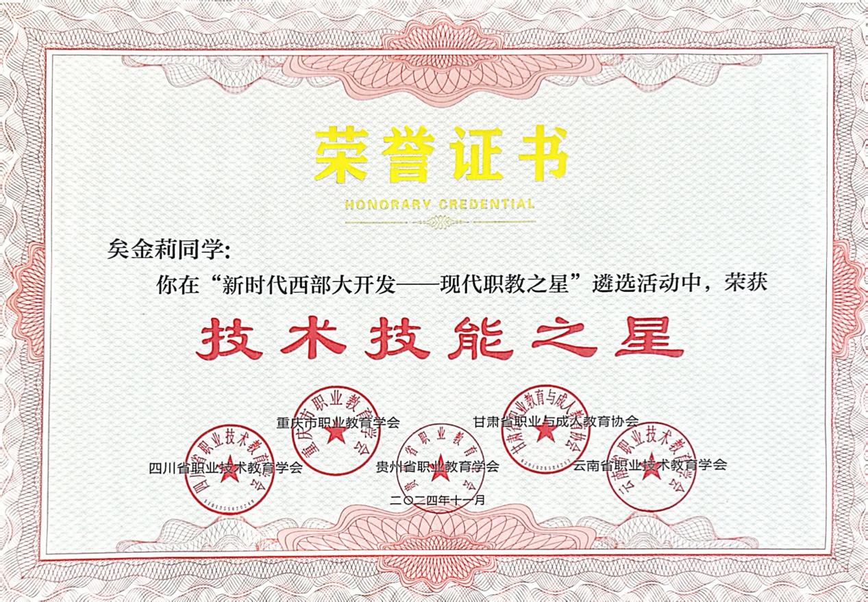 ▲酒店管理学院矣金莉同学荣获“技术技能之星”称号
