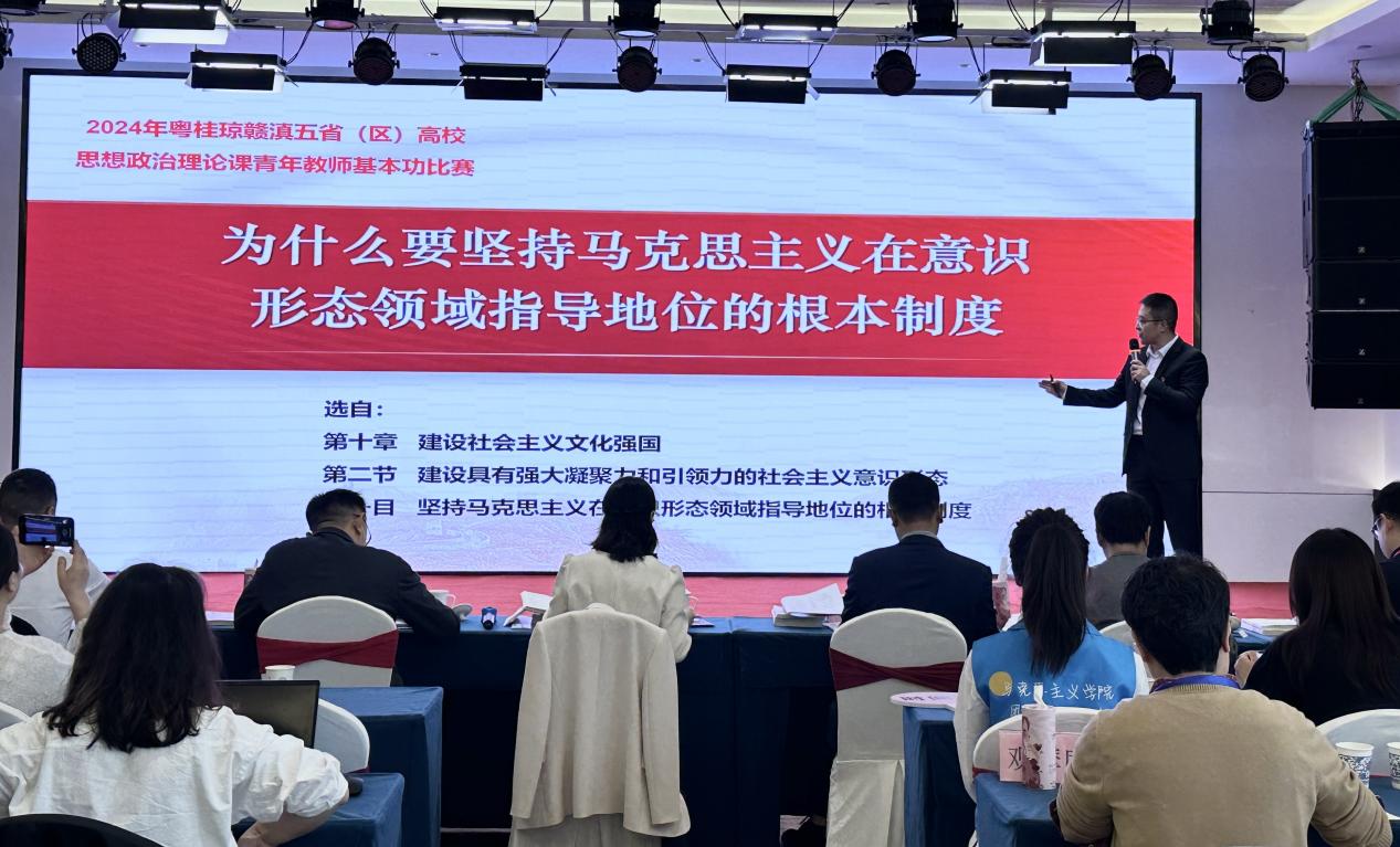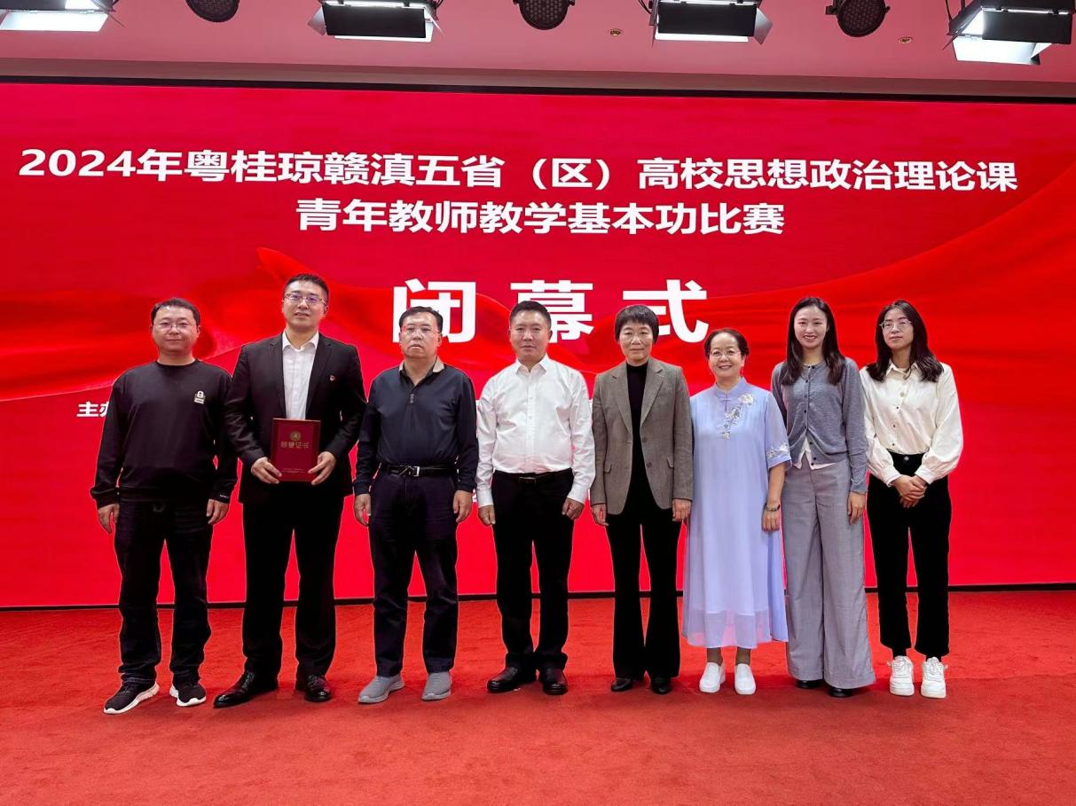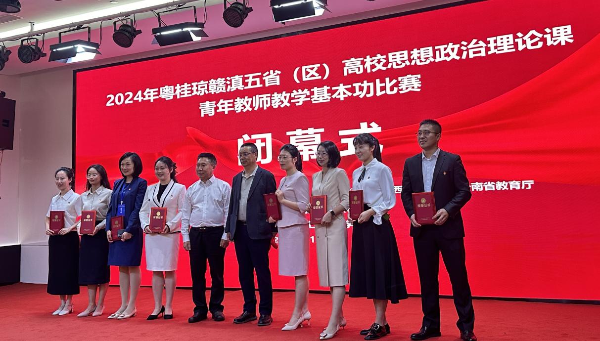 2024年粤桂琼赣滇五省(区)高校思想政治理论课青年教师教学基本功比赛于11月15日—16日在江西上饶师范学院举行。经过激烈角逐,我校马克思主义学院思政课教师王翔宇在比赛中表现优异,荣获高职组三等奖。