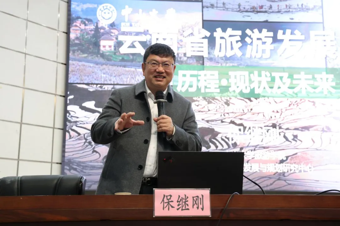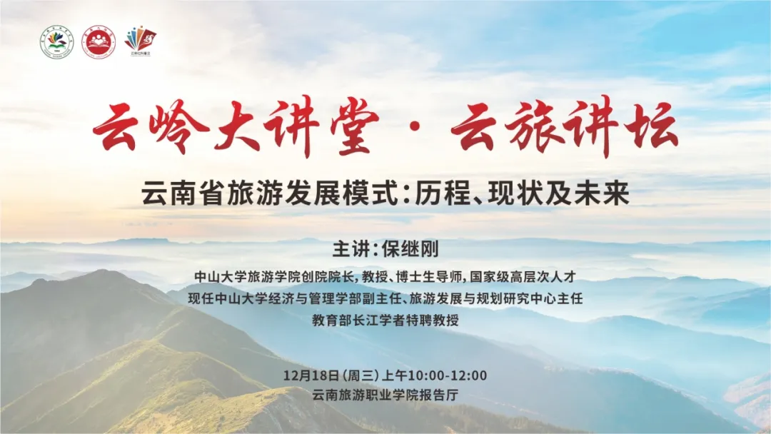 为深入学习贯彻习近平总书记对建设旅游强国的重要指示精神,了解旅游产业发展现状,提升旅游职业教育与产业建设的匹配度,12月18日上午,我校“云岭大讲堂·云旅讲坛”在报告厅成功举办,特邀教育部长江学者特聘教授、中山大学旅游学院创院院长、联合国旅游组织尤利西斯奖、全国五一劳动奖章获得者保继刚教授作为主讲嘉宾,校党委书记王翔主持讲座。全体校领导和部分师生代表共550余人现场聆听讲座。