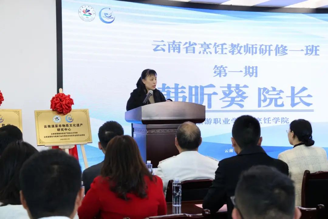 2月13日,“云南省烹饪教师培训基地”及“云南滇菜非物质文化遗产研究中心”在我校正式揭牌成立。云南省教育厅职成教处副处长王勇、昆明市教育体育局职成教处处长文春燕受邀参加本次活动。仪式由我校蔡冰院长主持。