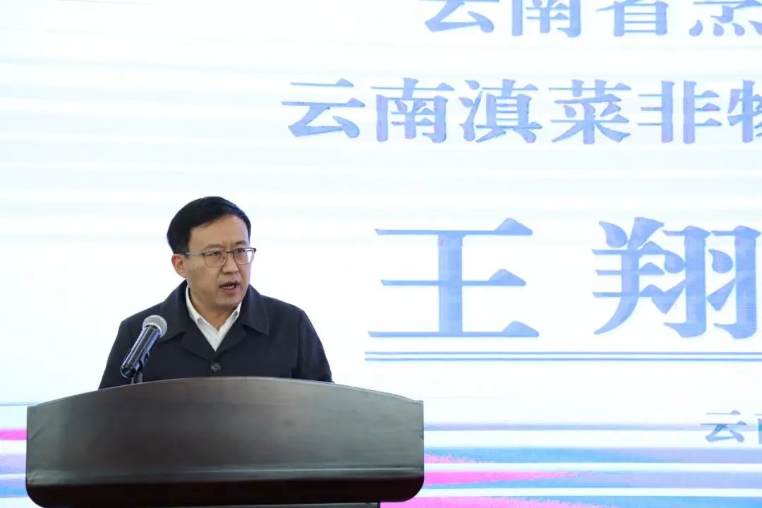 仪式上,我校党委书记王翔首先代表学院致辞。他指出,此次与云南省餐饮与美食行业大师名厨技能专业委员会以及上海餐教科技服务有限公司的深度合作,是我校贯彻落实全国职业教育大会精神、深化产教融合与校企合作的重要实践,并表示“云南省烹饪教师培训基地”的成立将依托行业大师名厨的技艺传承、上海餐教科技的数字化教育资源以及我校的专业优势,打造一支“双师型”烹饪教师队伍;“云南滇菜非物质文化遗产研究中心”的建立则旨在系统挖掘滇菜的历史脉络、技艺精髓与文化价值,推动非遗技艺活态传承。