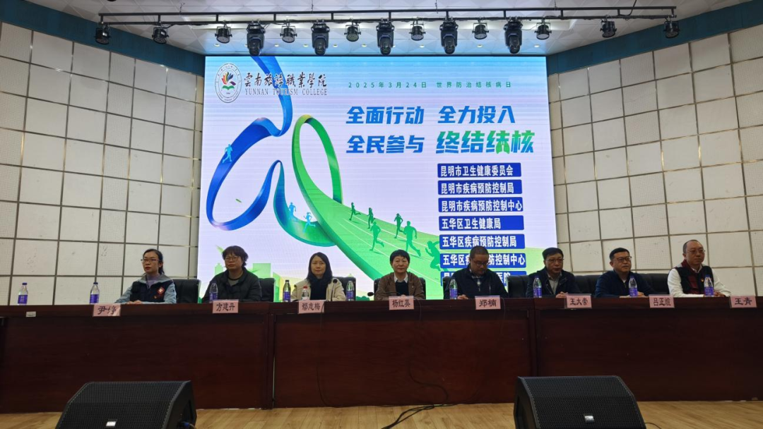 为贯彻落实云南省学校重点传染病防控工作会议精神,做好学院传染病防控工作,3月24日下午,我校联动昆明市卫生健康委员会、昆明市疾病预防控制局、昆明市疾病预防控制中心、五华区卫生健康局、五华区疾病预防控制中心、昆明市第三人民医院等单位,在报告厅举办2025年“世界防治结核病日”现场宣传活动。