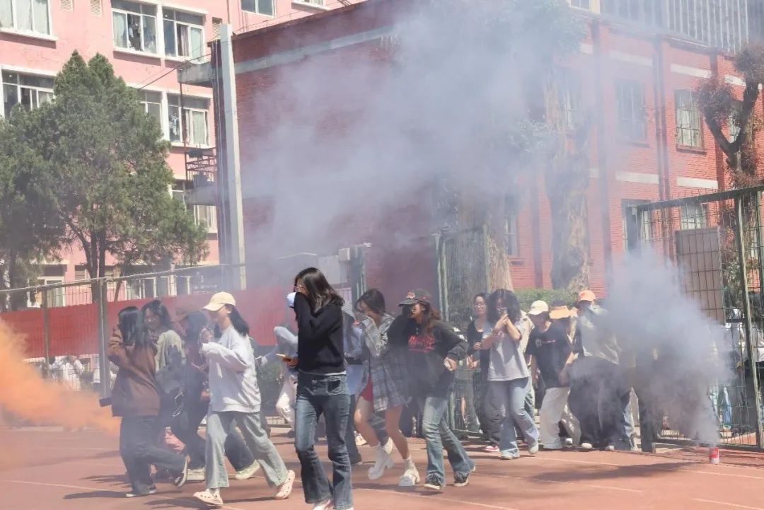 下午14:30分,随着警报声响起,全体同学迅速按照预定方案进入紧急疏散状态,在各点位引导人员的指挥下,同学们捂住口鼻、俯身弯腰,沿着安全通道有序撤离至安全区域。整个疏散过程迅速而有序,撤离至操场等安全区域后,各班老师立即清点人数,确保无一人遗漏。