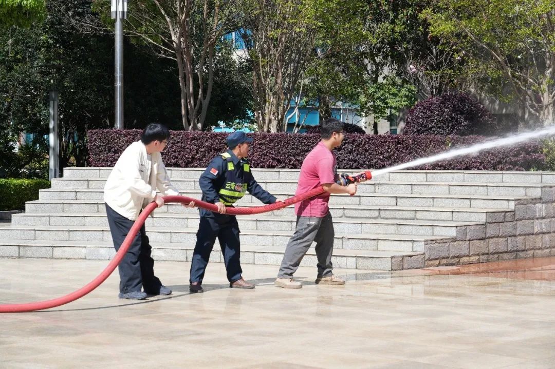 最后,全校各班级安全委员、部分学生代表及安保人员参加了灭火器及消防栓的使用实操培训,做到理论与实际相结合,切实提升了消防安全的技能。