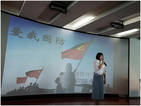 邓绍玲同学也以精心准备的内容和标准动听的语言,晓之以理、动之以情地唤起了青年学子“爱我国防、青春报国”的激情,最终位列第三。