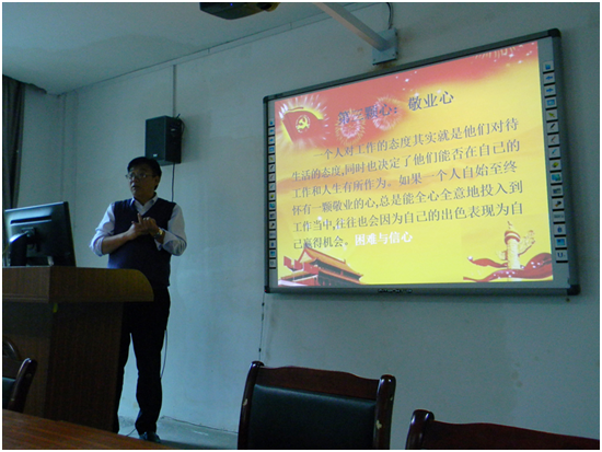 专题党课上黄副院长强调作为一名教师要有敬业之心。