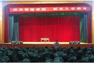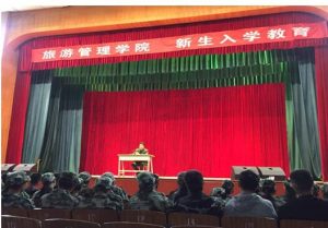 赵明院长在讲话中介绍了旅游管理学院正处于稳步上升时期,同时旅游业是最有发展潜力的产业,鼓励同学们要提升和培养综合能力,从旅游行业脱颖而出,为旅游行业发展建设贡献力量。