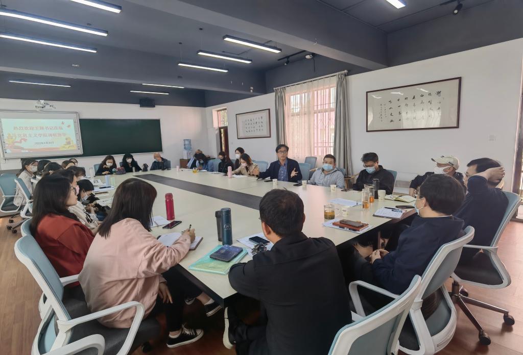 2019年3月18日,习近平总书记主持召开学校思想政治理论课教师座谈会并发表重要讲话,时隔三年,为重温习近平总书记关于思政课建设的重要论述,进一步贯彻落实习近平总书记3.18重要讲话精神,近日,学校党委书记王翔到马克思主义学院与思政课教师开展座谈交流。马克思主义学院院长周利兴主持会议。