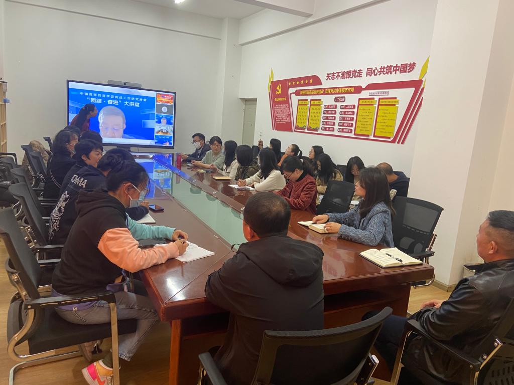 3月6日下午,根据教育部2023年思政工作要点及省委教育工委统战部要求,为进一步加强党外知识分子思想引领,学院统战部积极组织统战干部、党外人士代表、思政课教师代表30余人在办公楼三楼会议室集中收看“团结•奋进”大讲堂(第3期)。