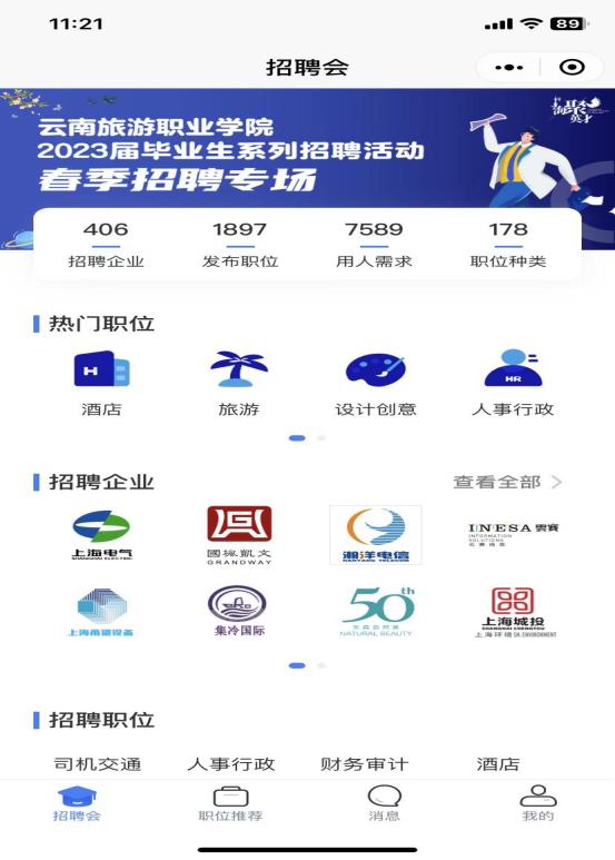 前期周密筹备,精心筛选,此次招聘活动采取线上的模式举行,共有406家企业参加,为广大求职者提供了旅游、酒店、餐饮、市场营销、贸易商超等共计1897个就业岗位。用人需求达7589人,提供职位种类178种。本次招聘会通过“云旅就创”公众平台“一对一”精准推送给2023届毕业生及毕业两年未就业毕业生,当日阅读量达535次,分享21次。本次春季线上招聘会的召开,不仅推动了江南官方注册2023年就业工作顺利展开,也为完成就业目标进一步夯实基础,在帮助学生在就业前充分做好求职准备的同时,极大的增加了同学们的求职机会,从而有助于提高云旅学子就业质量。