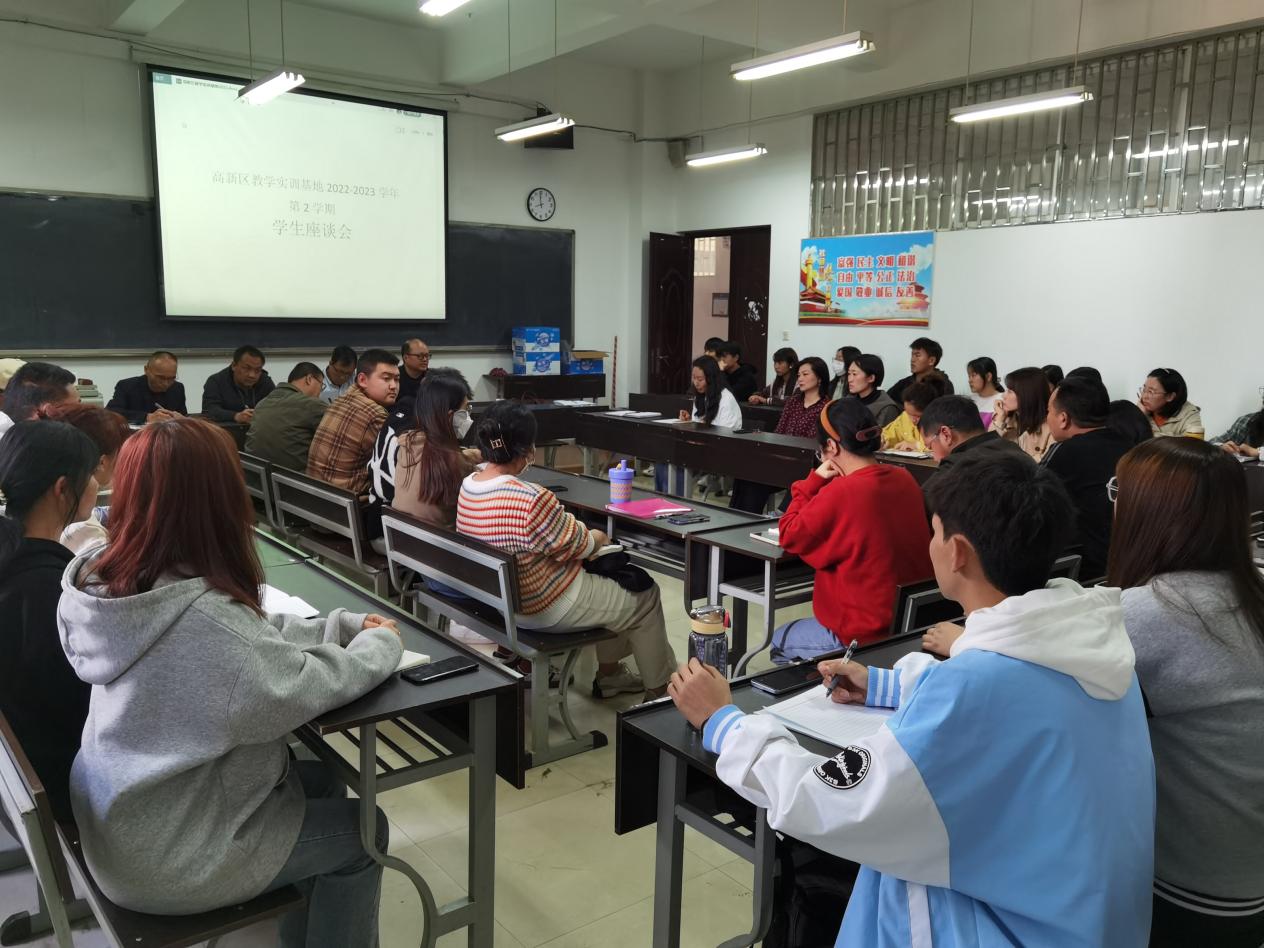 为深入贯彻落实“以学生为中心”的工作理念,解决学生生活中遇到的各项问题,搭建学生与学院间沟通的桥梁,江南官方注册高新区教学实训基地2023年春季学期学生座谈会于3月21日中午在教学楼410室召开。会议由产教融合办公室主任陈吉顺主持。