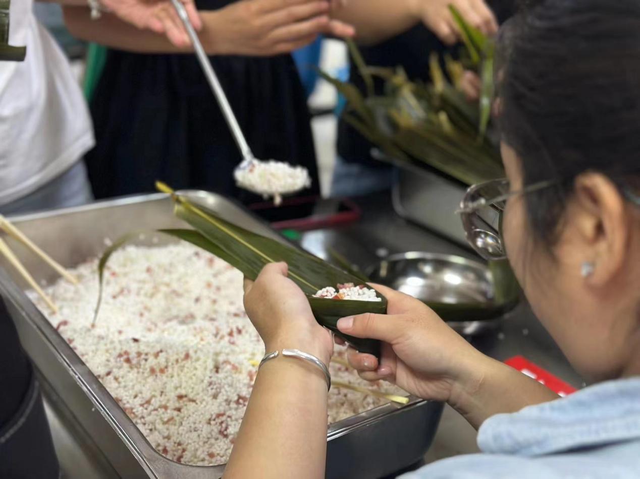 参与包粽子的一位同学表示,自己是第一次包粽子,没想到包粽子是个辛苦活,从中可以感受食堂员工工作的不容易。在粽子发放现场,许多同学们纷纷感慨:一个粽子一份情,感谢食堂员工和同学的付出,温暖收到,感动满满。