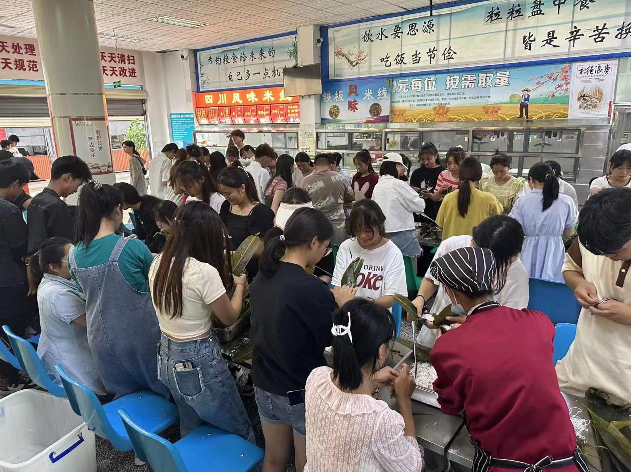 此次活动由学院团委、学生会及后勤管理与服务中心联合食堂员工及学生共同开展,据学院后勤管理服务中心老师介绍,活动由包粽子和发粽子,粽子是由食堂采购原材料,组织食堂工作人员及部分学生参加包煮,然后再免费发放给学生。