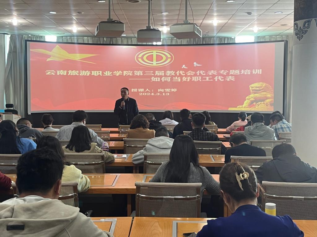 为进一步加强工会组织自身建设,提升教职工代表综合素质,履行好民主参与、民主监督、民主管理职责,更好地维护职工合法权益,助力学院高质量发展。3月13日下午,学院工会邀请云南省工会共青团妇联干部学校向雯婷老师围绕“如何当好职工代表”作专题培训,培训由党委副书记、工会主席王敏主持,学院全体教代会代表参训。