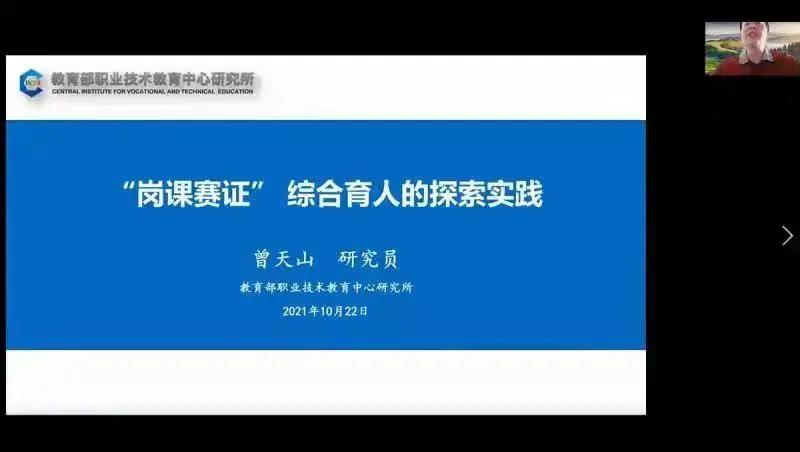 本次会议的主题是“聚焦‘岗课赛证融通’与‘三教’改革,构建教师教学创新团队协作平台”,与会领导、专家、嘉宾围绕主题展开深入阐述。在主旨演讲环节,教育部职业教育中心研究所副所长曾天山作《“岗课赛证”综合育人的探索实践》主旨报告,从“岗课赛证”综合育人的重要意义、国际经验、国内实践等方面,提出构建“岗课赛证”综合育人融通机制、同向发力联动改革,以实现“岗课赛证”综合育人,促进“三教”改革,推进人才培养模式创新;国家教育行政学院学术委员会主任邢晖教授作《职业教育 政策动态 教师团队 课题研究》主旨报告,从全国职教大会精神、相关新政策、“十四五”要求的政策动态,双师素质、教学团队、任务要求的教师团队,通知要求、申报论证、联合攻关的课题研究等方面,深入浅出地亮出对新时代职业教育教师教学创新团队建设的深度思考;世界旅游联盟副秘书长、浙江旅游职业学院原党委书记王昆欣教授所作的《新专业 新标准 新教改 新路径——职业教育旅游类专业教学标准修订的思考》的主旨报告,以教育部职业教育专业标准修订综合组专家的经历,介绍了旅游大类的新专业、新目录、新特色、新内涵,提出了“全”“新”“特”的新专业标准修制订的思考,并分析了景区专业智慧升级的路径。