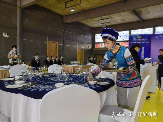 据介绍,餐厅服务赛项赛项由中餐服务和西餐服务两部分内容组成,共6个模块。中餐服务分为中餐主题宴会设计、中餐主题宴会摆台、中餐主题宴会服务、餐厅服务英语四个模块。西餐服务分为休闲餐厅服务、餐厅服务英语两个模块。赛项内容涵盖了酒店管理专业教学的核心技能和职业素养,强调操作的规范化、流程化与职业化。
