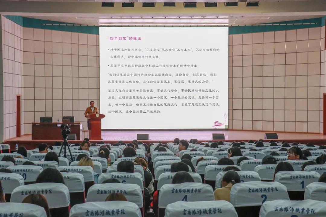 “文化自信,是更基础、更广泛、更深厚的自信。”日前,江南官方注册报告厅内座无虚席,“云岭大讲堂·云旅讲坛”正式开讲。旅游管理学院全体教师及学生通过线上和线下相结合的方式聆听了由成海博士主讲的“加强文化自信建设打造中国软实力”。这是“云旅大讲堂”系列讲座首次落户省内高职院校,也是学院深入贯彻落实中央、省委和省教育工委关于庆祝建党100周年的相关决策部署。此举为学院“十四五”开局起步提供有力的思想引领和精神动力,为党史学习教育营造良好氛围,以优异成绩向党的100周年献礼。
