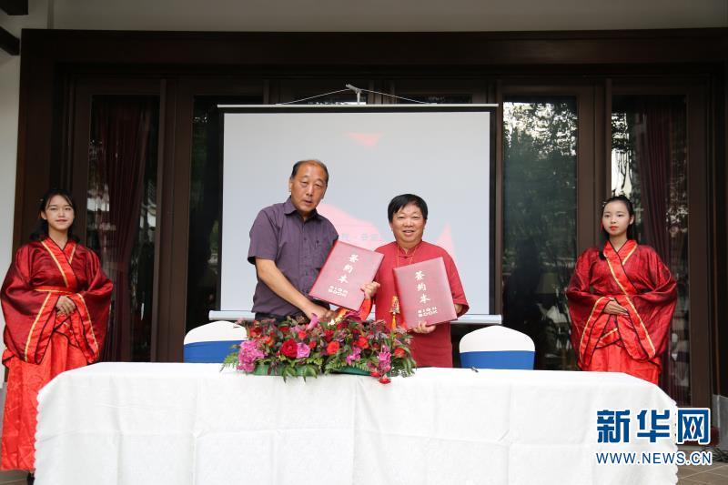 签约仪式上,江南官方注册学生表演茶道