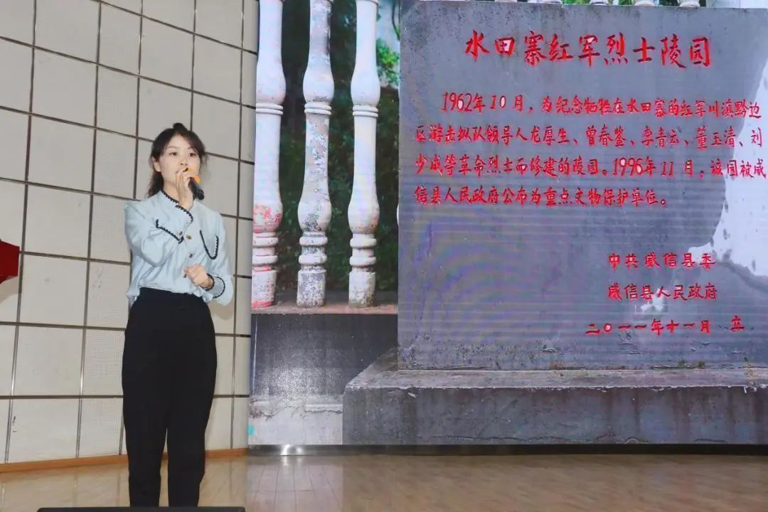 “这些先烈活动在民间,战斗在民间,牺牲在民间,长眠在民间,从来没有离开过人民,人民也从来没有忘记过他们。”活动中,威信县文化和旅游局公共服务股副股长杨飞向师生们生动讲述了《光辉的扎西会议》、革命烈士龙厚生的故事。