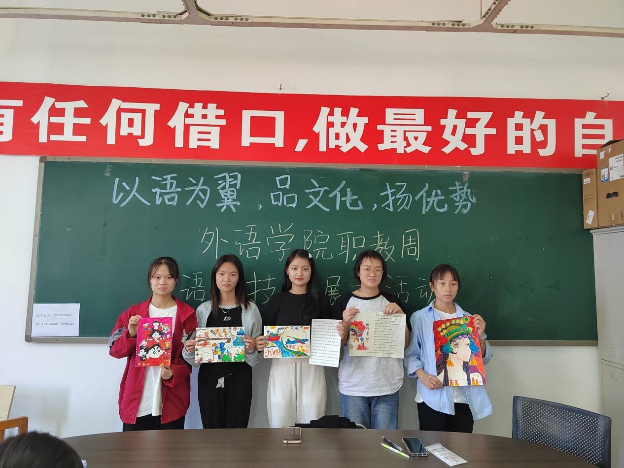 外语学院结合外语专业特色,在校本部、龙头街实训基地、高新实训基地分别开展了主题为“以语为翼,品文化,扬优势”的职教周活动。在校本部,旅游英语、应用泰语、应用日语专业的同学以班级为单位,进行着单词闯关游戏,每班词汇量较大的5-10人参加词汇拼写比赛。学生根据老师读出的难度不同的单词进行拼写,拼写出更多单词的班级获胜。在短剧趣配音环节,3个专业的同学们用声音重现了一个个惟妙惟肖的角色,赋予这些角色新的生命,让听者身临其境。在高新校区,外文书法、简笔画、英文儿歌等活动如火如荼地进行着。同学们个个大展身手,绘画栩栩如生,书法丰筋多力。从蓝天白云到花草树木,从卡通人物到京剧角色,从英语文章到泰语诗词……大家尽情发挥,展现出广大青年阳光向上的青春姿态。在龙头街实训基地,小学英语教育专业的同学们开展了模拟课堂教学技能训练和展示,他们将课堂所学应用于实践,把自己当做真正的老师,站在讲台上的那一刻,他们充满自信,标准的发音、流畅的教学环节、有趣的操练游戏、精美的板书设计、一堂精彩的小学英语课得以呈现,为今后走向教师岗位打下坚实的基础。