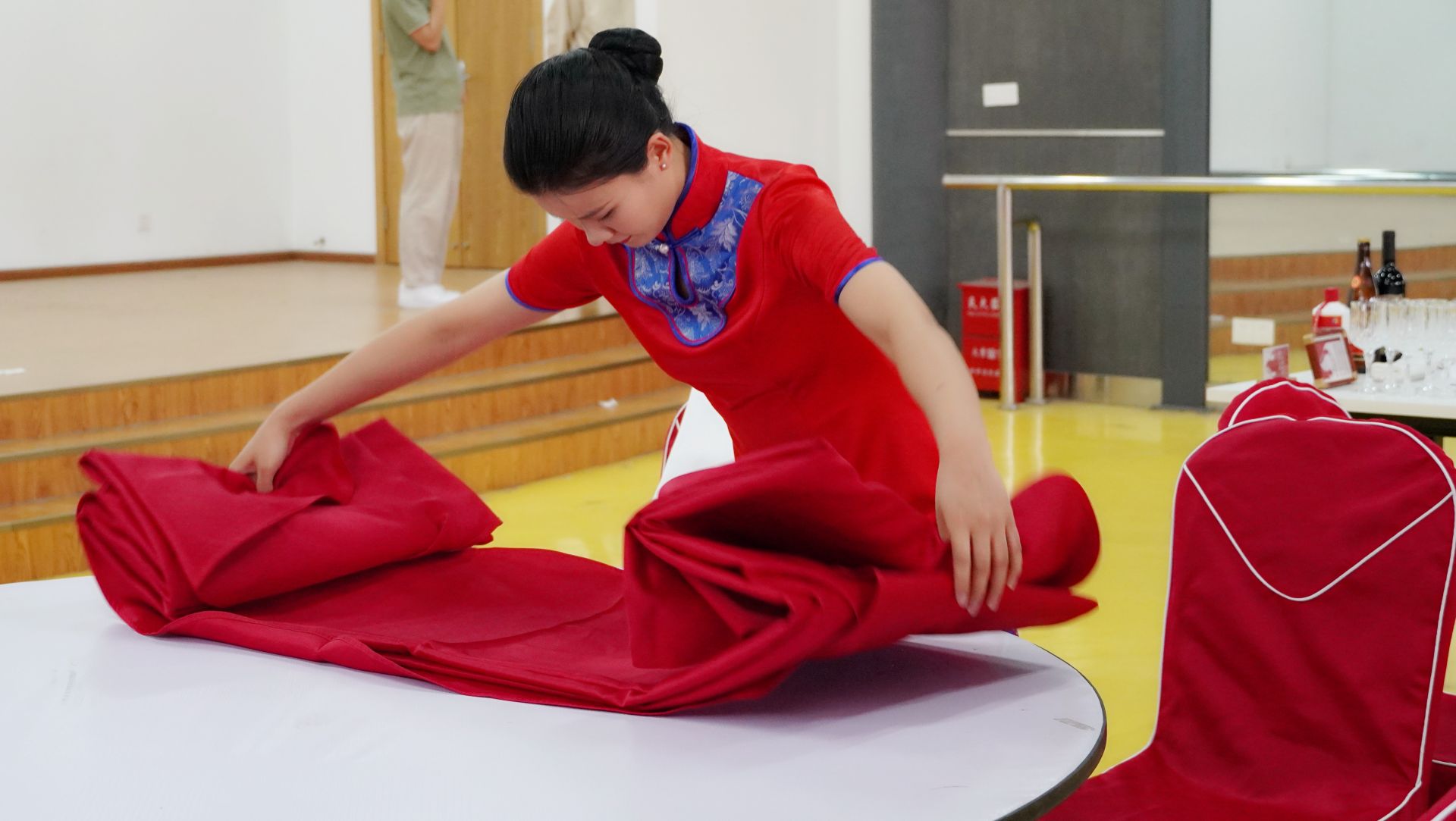 据悉,第二届全国乡村振兴职业技能大赛“餐厅服务”赛项包括主题设计方案及答辩和主题造型、主题宴会摆台、服务技能及餐巾花展台、现场分餐服务及仪容仪表四个模块。主要考查选手的餐饮知识、不同场景的服务规则、服务意识、安全环保操作有关规范等。矣金莉在赛场上热情高涨、操作娴熟、切磋技艺、相互学习,充分展示了新时代技能人才的精湛技艺和工匠精神。