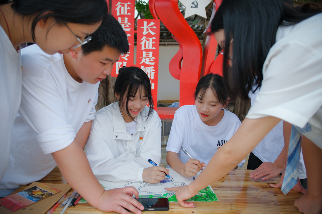 课堂上,同学们结合所学知识和现场感悟,分享了自己对红色历史的认识和对长征精神的理解。其中,旅游管理学院的学生以手绘红色地图的形式,展现了他们对这段红色历史的理解和学习成果。文化艺术学院的学生则以红色舞蹈的形式,展现了他们对红色文化的热爱和敬仰。