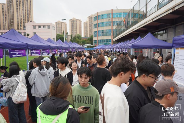 早上9点,展板前、通道边,毕业生们或低头整理简历,或鼓足勇气与企业面对面沟通,有的展位前就排起了长龙。“现场人太多了,排了三轮才轮到我。”一位来自旅游管理专业的同学说着笑了笑,额头微微冒汗。