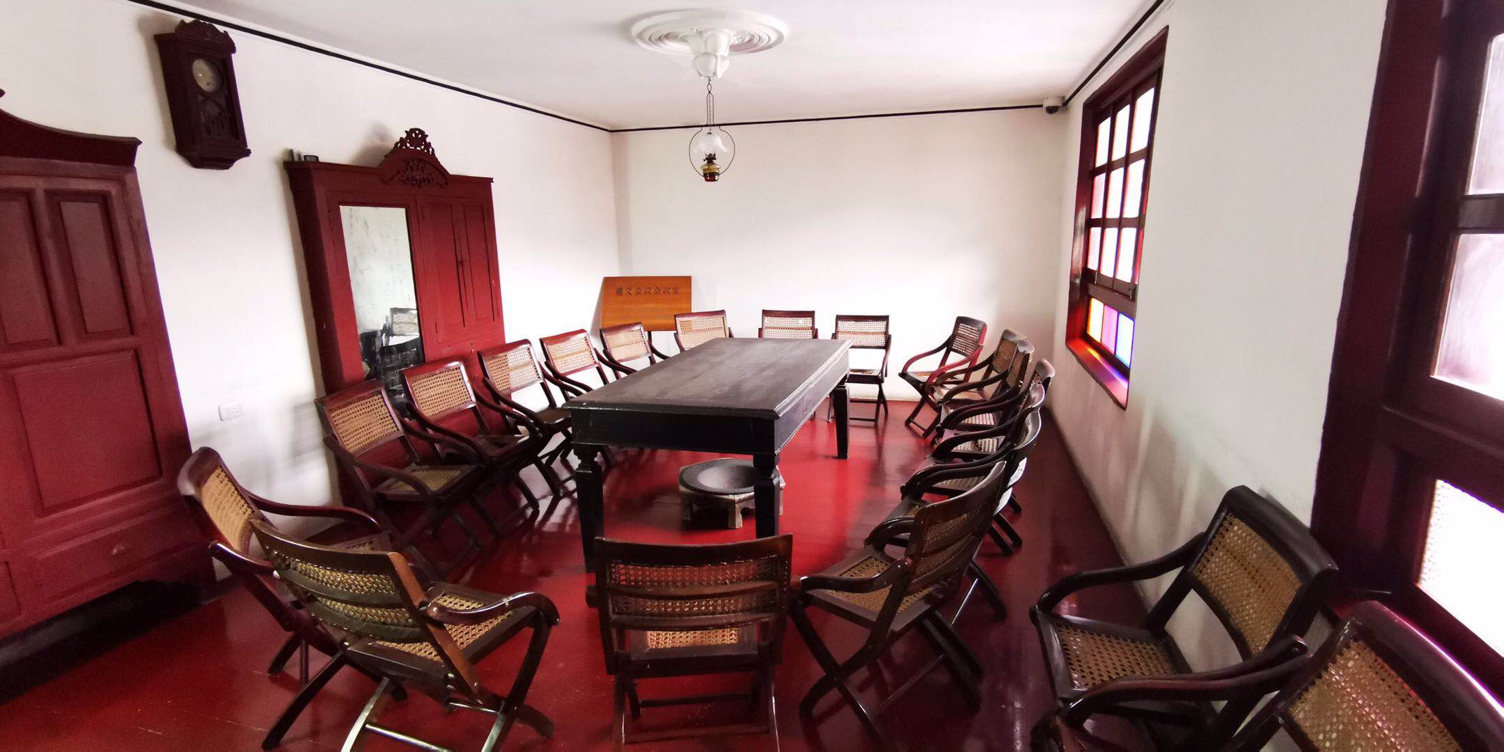 遵义会议召开的会议室按当年场景摆放着会议桌椅。图:央视新闻