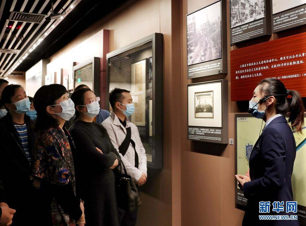 人们在上海市档案馆外滩馆参观“真理之甘 信仰之源——纪念陈望道首译《共产党宣言》中文全译本100周年主题展”(2020年6月24日摄)。新华社记者 刘颖 摄