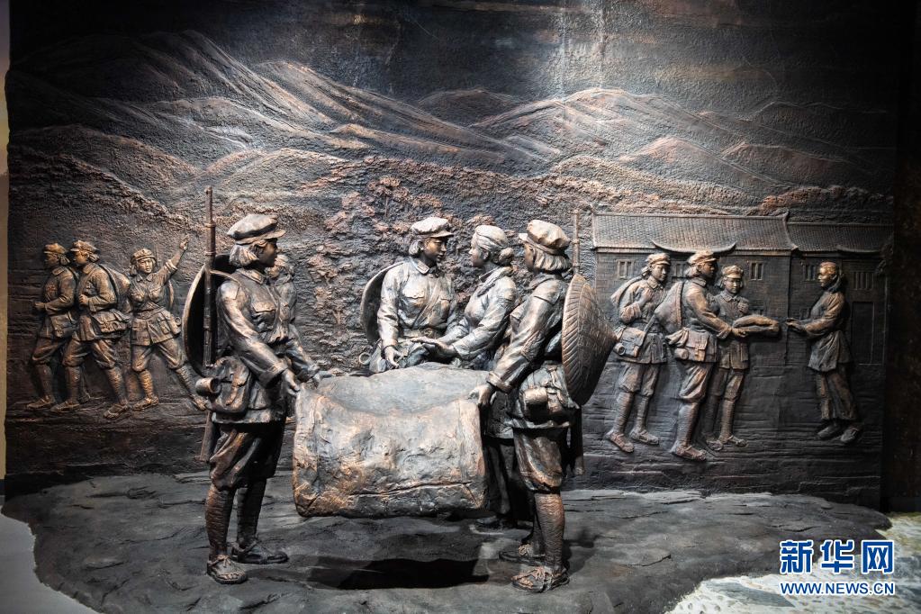 这是在湖南省郴州市汝城县沙洲瑶族村“半条被子的温暖”专题陈列馆拍摄的“半条被子”故事雕塑(2020年9月17日摄)。新华社记者 陈思汗 摄