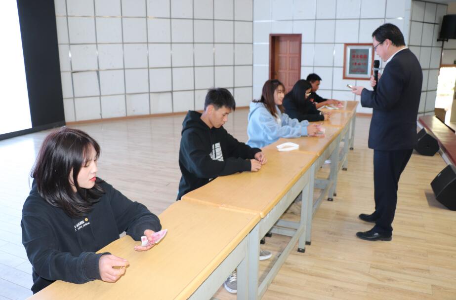 在活动现场,招商银行的老师们亲自指导我院的同学如何进行验钞和点钞,并现场示范教学。让我院大部分同学都参与进其中。