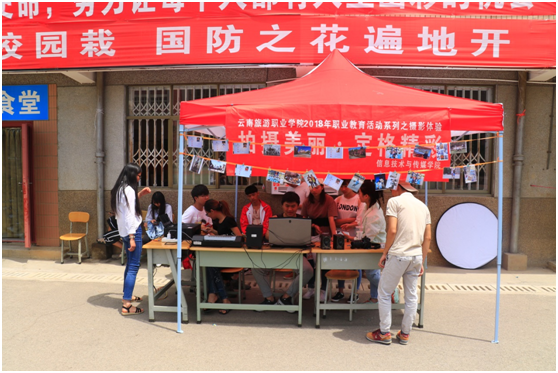 2018年5月10日—11日,信息技术与传媒学院师生12人向全校师生进行“拍摄美丽,定格精彩”摄影体验活动。通过摄影知识介绍、摄影器材体验、传授摄影技巧等活动,展示信息技术与传媒学院学生摄影技能。在学校广场免费为师生拍摄照片,打印照片,留下精彩瞬间,据统计有280人次参与此次活动,达到了预期效果。力求宣传学校、留下旅院美好瞬间。