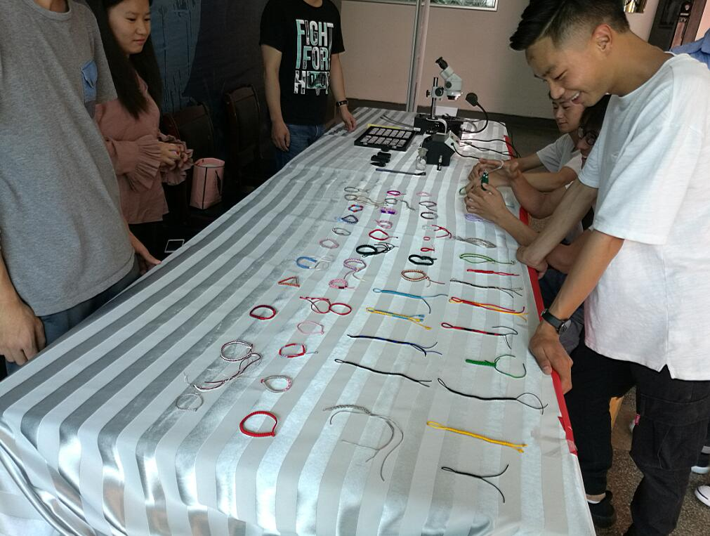 这周为资源工程学院职业教育活动周,宝玉石专业依据加快专业建设发展的要求,本着专业特点,制定以“宝玉石鉴定”和“工艺编结”为主题活动方案、精选项目内容、认真开展活动。活动开展第二天我们展示了使用珠宝鉴定仪器鉴定彩色宝石的方法和蛇结的编制方法,并让师生来亲自体验,得到全院师生员工积极响应,活动开展得有声有色,获得大家的好评,收到了良好效果。